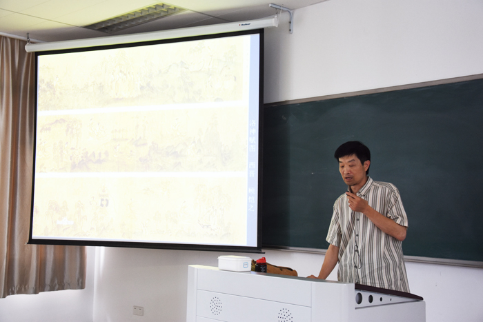 6月15日上午十点,“高雅艺术进校园活动之中国意笔人物画品读讲座”在教学楼1403隆重举行。主讲人为扬州大学美院教授、国家社科基金艺术学项目学专家吴越滨老师。bv1946伟德官网吴新林经理参加并主持讲座,参加此次讲座的员工主要为bv1946伟德官网15、16级员工。现场气氛热烈,同学们掌声连连。