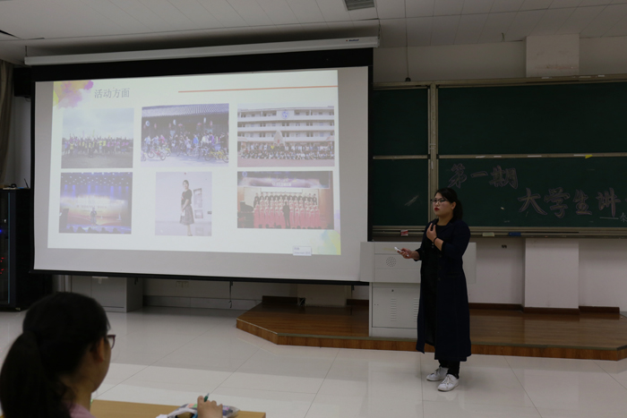 沈红豆从学习、活动、工作、志愿服务四个方面向同学们介绍了她的老员工活。在学习方面,她以自己战胜省统考的事例告诉同学们只有坚定信念、脚踏实地的实现每天的小目标才能完成最终的目标。其次,在活动方面,她激励同学们积极参加公司活动,从活动中锻炼胆量,增强自身团队合作能力。同时,告诉大家要认清社会工作要求与学习专业的不同,学会把专业与实际结合起来。紧接着,她用一颗马蹄钉导致战争失败的事例诠释了做事要注重细节,及细节决定成败的道理。最后,通过敬老院看望老人的事例,希望大家能够认真感悟、理解自己心中的大学,而不是从别人口中听大学,坚守住自己的初心。
