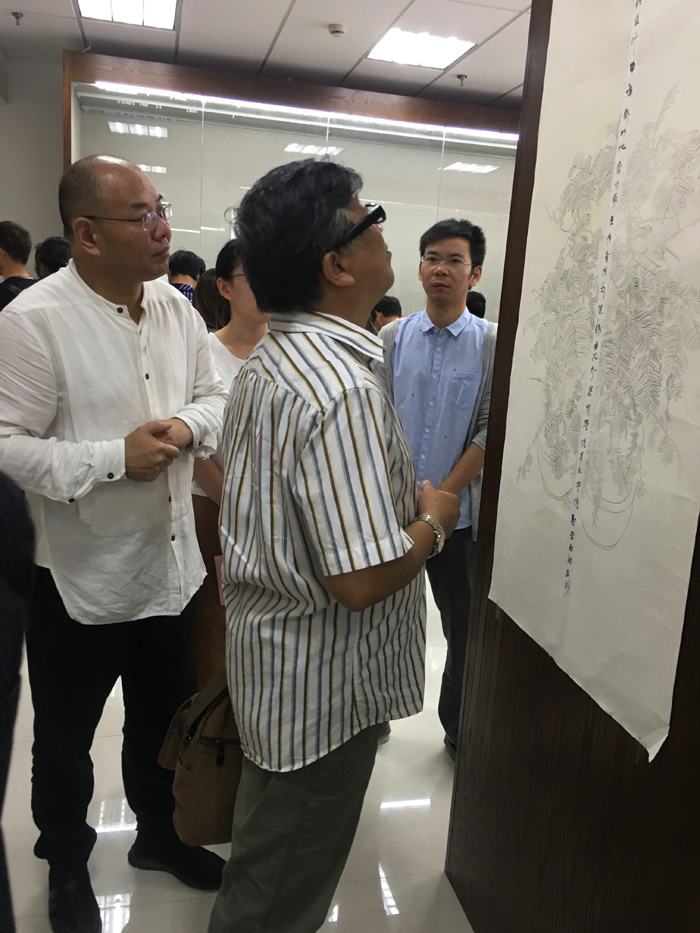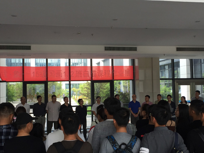 2017年9月29日周五上年9:40,bv1946伟德官网国画教研室艺术楼七楼国画临摹室举办的“线.象——15级国画1、2班线描课程作业展”开幕式在艺术楼门厅进行,受邀参加开幕至的有泰州美协主席徐文藻先生、美院副经理吴新林、李玉功、办公室主任杨勇华、教务科长季恒、设计教研室主任王立夫教授、环艺教研到季良平教授以及国画教研室老师杨新林、刘华年、刘粟、学工办顾家伟、丁田老师等,15级及16级绘画专业员工参加活动并参观画展,展览由国画教研室刘晨韵老师主持,徐文藻主席、吴新林经理及袁俊华教授分别发言。