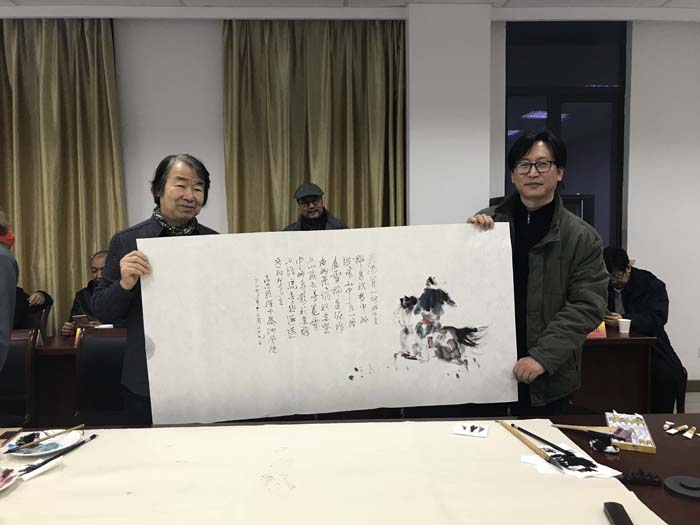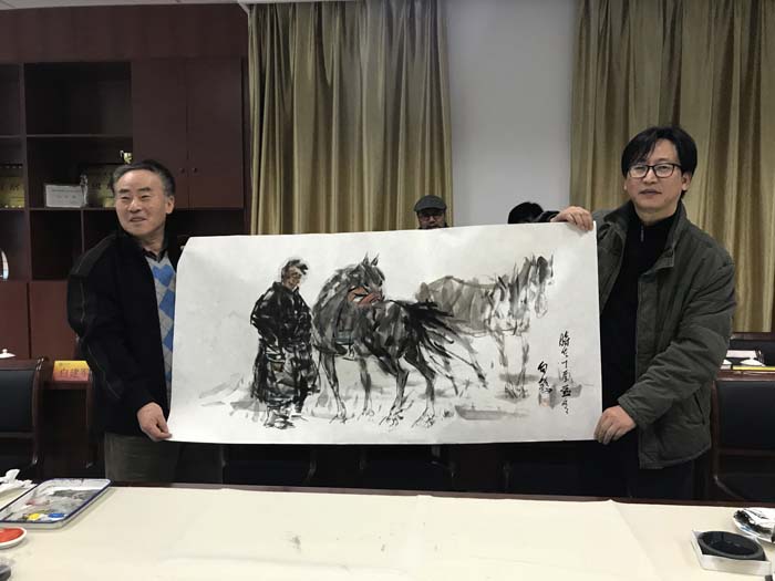 12月29日下午,民族国家画院艺术家一行12 人,以自由艺术家吉尔格楞和著名音乐家乌兰托嘎为首及内蒙古美协和青岛大学教授等一批艺术家来公司调研交流。温潘亚董事长出席了本次交流活动。