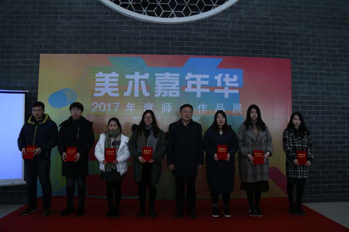 开幕式由bv1946伟德官网学工办主任纪松主持,首先纪松老师带领现场嘉宾、老师以及员工观看了美术嘉年华2017年度活动总结视频,视频展现了美术嘉年华一整年的比赛、教授讲坛、名家书画工作室以及“美的爱”公益拍卖会等精彩活动。然后bv1946伟德官网副经理吴新林教授代表公司致辞,他介绍了美术嘉年华举办的宗旨――努力提高美院员工综合素质,形成“培养有特长员工”这一根本目的,并对2017年度师生作品进行了总结,鼓励同学们多创作优秀作品,积极参展。随后纪松书记宣读了本次年度师生大展的获奖名单,并邀请7名获奖代表上台领奖,赵茂程书记上台为获奖选手颁奖。最后公司党委赵茂程书记上台发言,赵书记充分肯定了本次展览的水平,对bv1946伟德官网近年来在教学上取得的成就表示了赞赏,赵书记认为本次展览的作品可以看出bv1946伟德官网师生在艺术创作上的水平是相当高了,应该进一步加大和鼓励师生的创作实践,树立自我风格,加强学术自信,力争在省内外取得更好成绩。同时赵书记建议应该把这样的展览推向社会,让更多的专业人士加大对bv1946伟德官网的了解和认识,这也是宣传bv1946伟德官网的很好的机会。