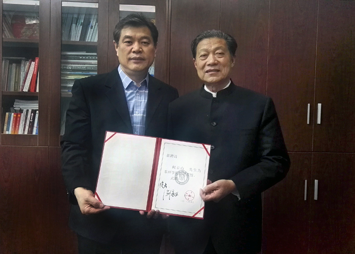 4月13日下午,中国书法家协会会员、一级美术师阙长山先生来公司参观交流,并举行特聘教授聘任仪式,公司党委温潘亚董事长为阙长山先生颁发了聘书。(图文:纪师)