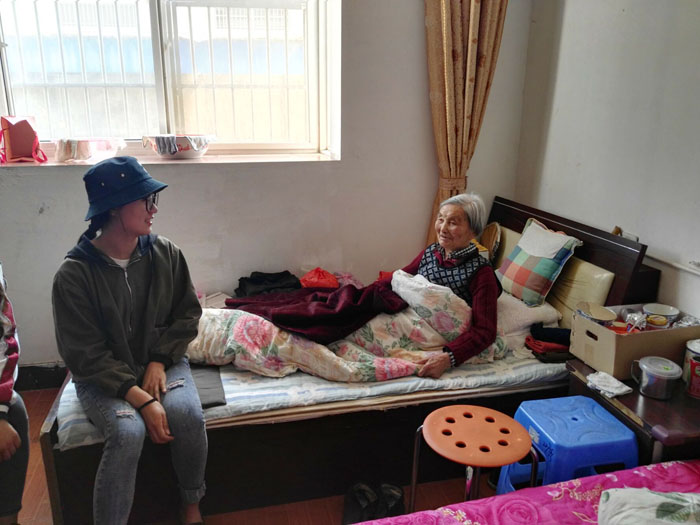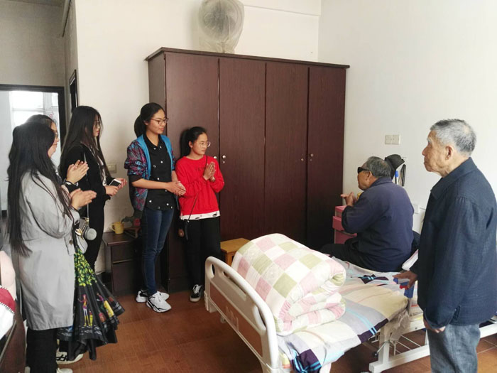 夕阳红敬老院负责人热情的迎接了bv1946伟德官网志愿者,带领大家到达老人们的住所。在向敬老院的工作人员了解到敬老院的有关情况后,志愿者们有序进入老人们的房间开展志愿者服务。大家有的帮老人们打扫卫生;有的坐下陪老人们聊天,听他们讲述当年的故事;还有的搀扶老人们到院子里散步。一位老爷爷用一首婉转动听的《卓玛》,感染了所有的志愿者,悠扬的歌声充盈着整个房间。看着老人们开心的笑容,志愿者们充分体会到了此次志愿服务活动的意义所在。两个小时的志愿服务很快就过去了,志愿者们和老人们一一告别,并在门口合影留念。