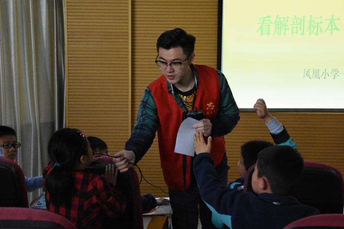 首先,大家跟随着戴津晶老师的步伐,来到了牧院动物解剖标本馆。戴津晶老师为同学说明了参观标本馆的注意事项。随后,同学们在标本馆引导员的带领下先后参观了宠物类剥制标本、家畜类剥制标本、动物解剖标本等等。通过标本馆引导员的讲解,同学们都受益匪浅。最后志愿者来到了多媒体教室,对前来参观的小朋友们进行绘画及手工指导。并在戴津晶老师的主持下同学们依次向大家讲述了自己的心得体会。