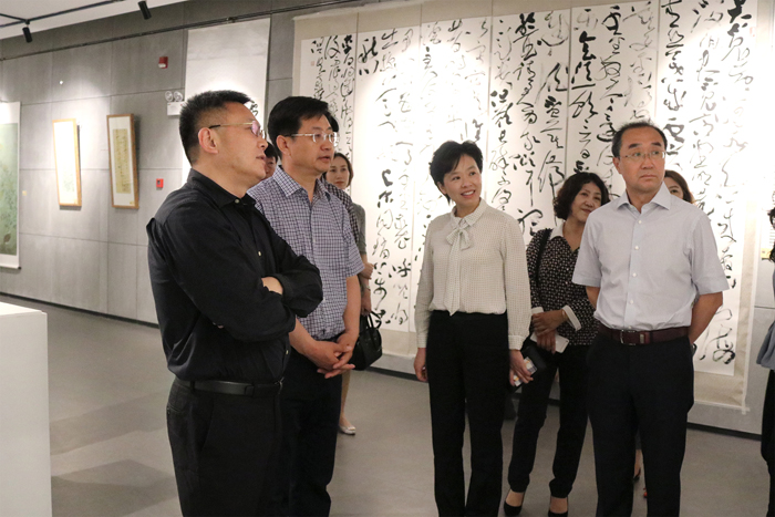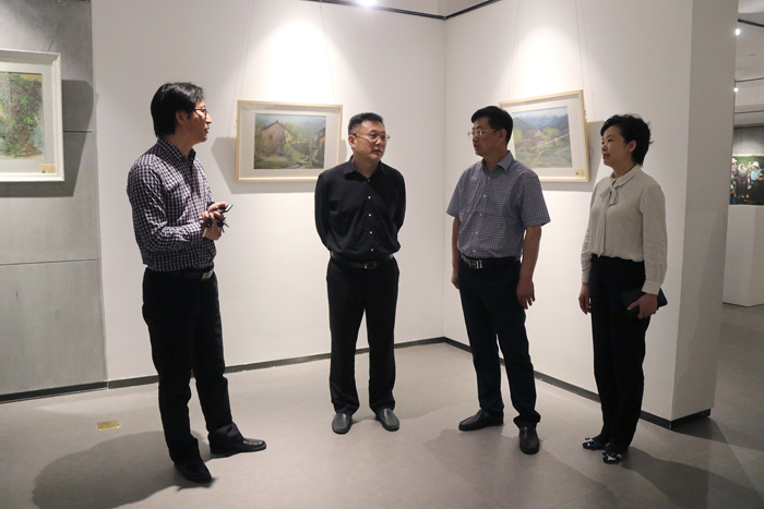 美术展览馆归bv1946伟德官网所有,馆内存放着在校师生的作品,包括创意设计作品、书法作品、绘画作品等等。曲景太等一行人此次所参观的展览馆里主要是教师的书法、绘画作品展。作品分门别类,风格殊异,精彩纷呈,翰墨流香,抒发了浓浓的故土情怀,具有较高的艺术水准,展示了公司书法、绘画教师的艺术风采。曲景太书记一行人赞叹不已。