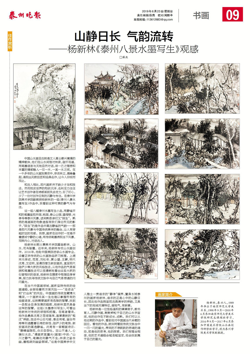 《泰州晚报》报道公司杨新林老师《泰州八景水墨写生》