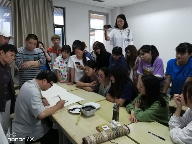 本场讲座巴秋先生首先从线的起源、毛笔的功用等方面比较了中西方对线条的不同运用,强调书法练习对强化中国画笔线魅力的作用,书法的用笔与物象的转换不可简单化,宁可有笔无墨,不可有墨无笔等。要求大家多向传统学习,要用写生的方法临摹。巴秋先生还通过创作演示并结合自己陕北窑洞、黄山民居等写生创作实践,阐述了点与皴、拙与畅、阴与阳的作用和相互关系,巴秋先生生动直观的讲座受到了师生们的欢迎。