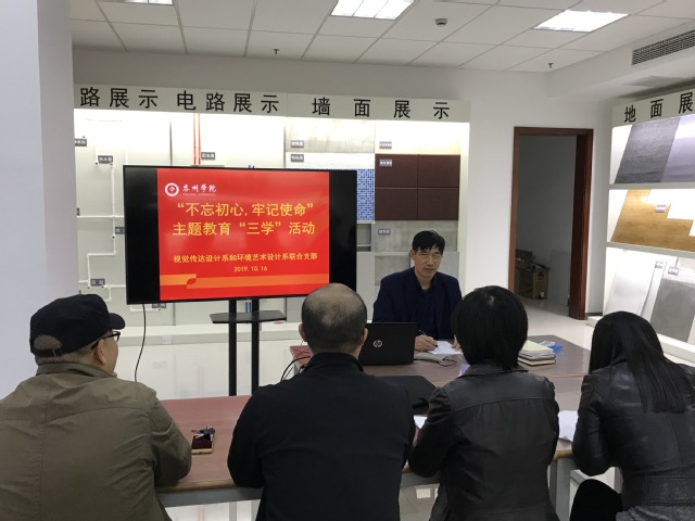 2019年10月16日下午,公司全体党员先在C1809室集中观看学习《大无大有—周恩来》《忠诚》《诺言》《孤岛32年》视频。集中观看学习后,美术教育系和书法系联合支部在C1602室、视觉传达设计系和环境艺术设计系联合支部在C1809室、学工支部在C1602室分别组织党员对照榜样进行学习讨论。