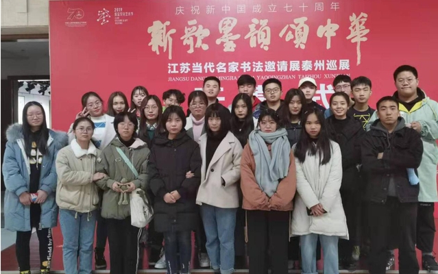 11月27日,bv1946伟德官网曹洋教授等教师带领19书法班全体员工参加了“新歌墨韵颂中华——庆祝新中国成立70周年江苏当代名家书法邀请展(泰州巡展)开幕式”。