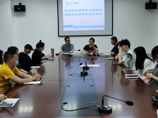 曹帽老师先行总结了疫情发生以来全院同学参与抗疫的积极表现,尤其赞许了开学之后全体员工抗疫先锋队成员死守安全防线长期辛苦付出,并鼓励大家再接再厉,把疫情防控举措落到实处。随后,抗疫先锋队成员依次汇报本班级疫情防控的工作亮点、成效,提出了工作中存在的困惑,引发了在座师生对相关问题进行了热烈讨论。