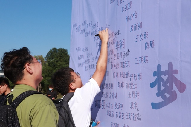 美院在迎新篮球场竖了一块签名墙,上面所有bv1946伟德官网新生的名字组合在一起,彰显了同学之间满满的情谊,每位同学在此留下自己的签名,并留下了珍贵的合影。