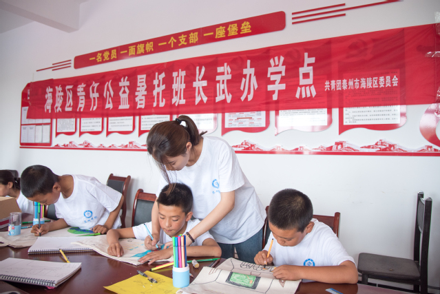在美术课堂,他们给留守儿童带去了水彩画、创意手工画等,让孩子们在课程中感受美、欣赏美、表现美、创造美,学会感恩,让美与童心童画相融,促进留守儿童在艺术教育上全面发展,健康成长。