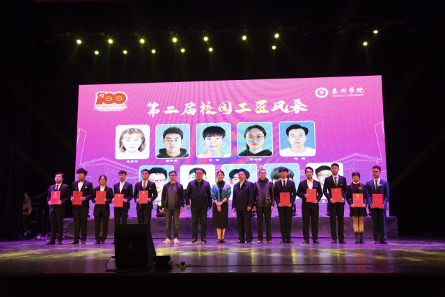 在校园工匠颁奖典礼和美院之星颁奖颁奖典礼环节,20名受到表彰的走上荣耀的舞台,校团委领导和公司领导给他们颁发了荣誉证书,他们是员工身边的榜样,是校园内最美奋斗者。