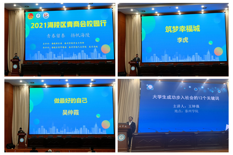 活动中,江苏润泰老虎游国际旅行社有限公司董事长李虎以“筑梦幸福城”为题分享了自己从白手起家到拥有一家品牌公司的创业经历,他希望同学们和他一道在海陵干事创业,成就梦想;上海巨凯楼梯有限公司泰州总经销吴仲霞以“做最好的自己”为题发表演讲,她期待同学们能通过创业,在成长的路上做最好的自己;泰州报业网络有限公司副总经理王钟葆结合自身创业经历,向同学们细致入微地讲述了老员工成功步入社会的12个关键词。
