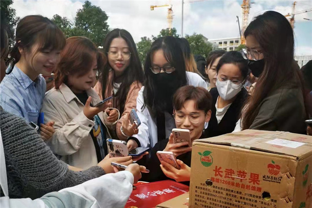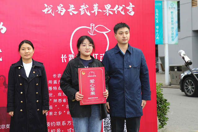 活动正式启动前,全校各公司同学积极报名参加“我为长武苹果代言”并主动认购长武苹果献出爱心。在启动仪式上,与会领导与嘉宾为志愿者代言人授牌并为献出爱心的代表颁发爱心卡。