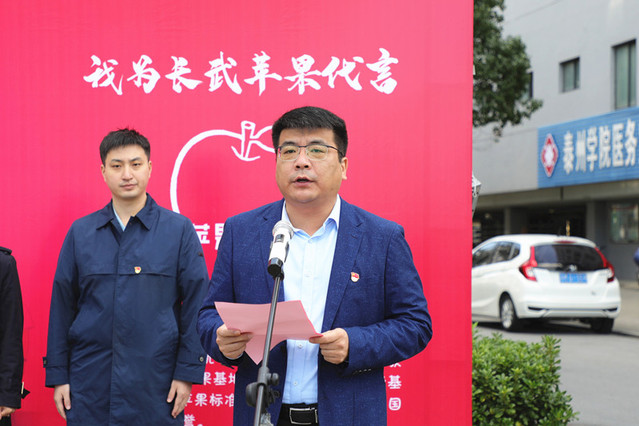 海陵区青年商会又一次加入到扶贫接力工作中来,青商会执行会长李凯来到活动现场主动认购100箱长武苹果并转赠予公司的家庭经济困难员工。