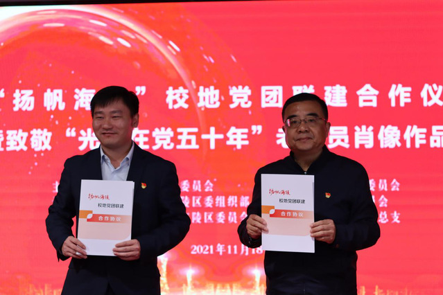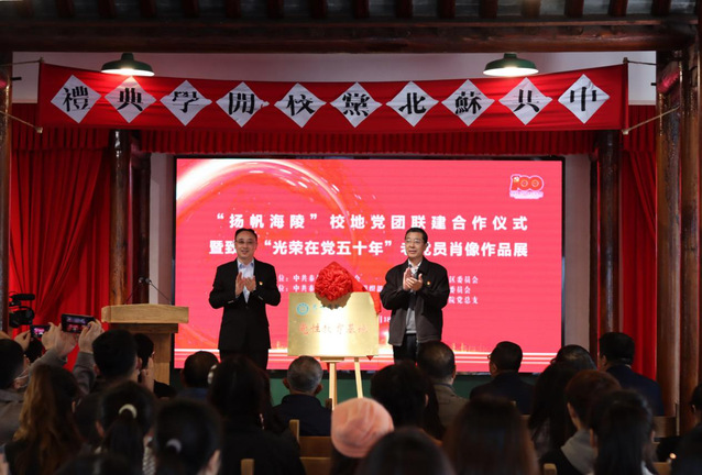 11月18日上午,“扬帆海陵”校地党团联建合作仪式暨致敬“光荣在党五十年”老党员肖像作品展在泰州市海陵区苏北党校隆重举行。本次活动由中共bv1946伟德官网委员会和中共泰州市海陵区委员会联合主办。公司党委副书记邓友祥,海陵区委常委、组织部部长周银松,公司党委常委、组织部部长吉泰根,公司党政负责人与党员教师和员工代表50余人参加了活动。活动由海陵团区委书记徐静主持。