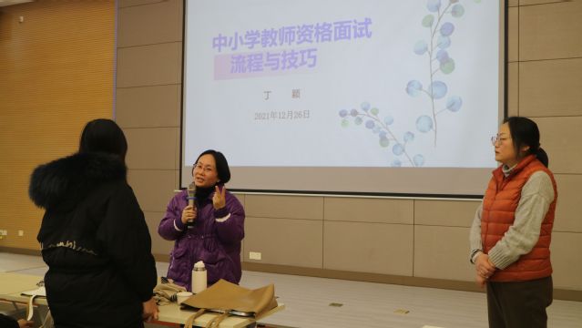 讲座伊始,丁颖老师为在场员工从政策上解读中小学教团队格面试考查内容,分别从教师基本素养和教学基本技能两方面进行了分析,加深了大家对教团队格证面试的认识。随后,丁颖老师就面试流程分别从候考、抽题、备课、回答问题、试讲演示以及答辩等环节,结合案例分析为同学们进行了详细讲解,并对每个环节的注意点给同学们提出了建议。讲座中,丁颖老师与同学们进行了亲切友好互动交流,用丰富生动的教学案例为同学们的困惑做了现场解答。