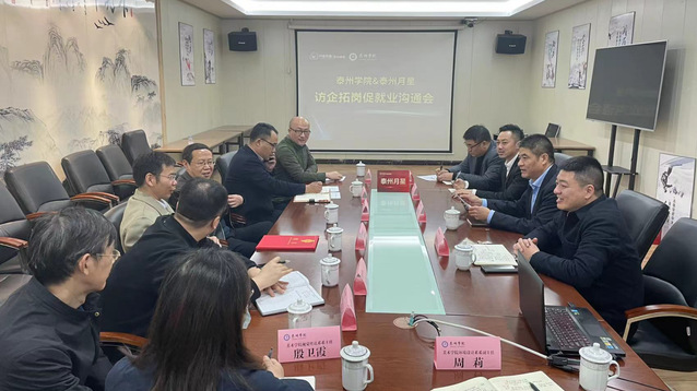 11月24日下午,公司党委常委、副董事长薛小平带队赴泰州月星家居开展“访企拓岗促就业”专项行动,学工处处长陈茂国、公司党政班子及环境艺术设计系、视觉传达设计系系主任人参加活动。