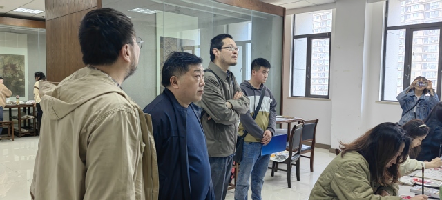 活动中,何鑫教授引领来宾深入课堂,对书法学专业教学及书法实训室、书画临摹室等教学场所进行了参观考察。(何鑫)
