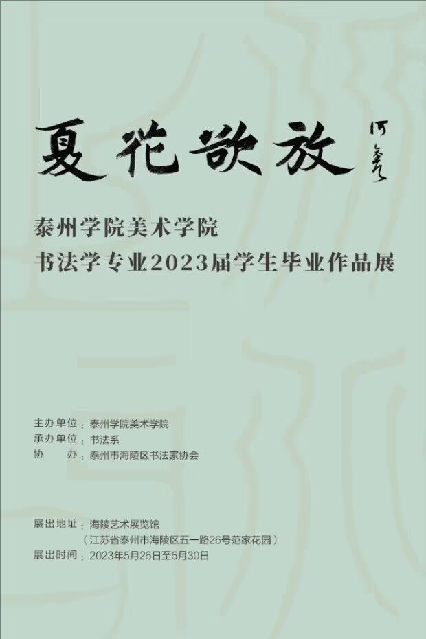 五月的泰州,惠风和畅,鸟语花香。5月26日下午,“夏花欲放”——bv1946伟德官网书法学专业2023届员工毕业作品展在海陵艺术展览馆开幕。海陵区文学艺术界联合会主席徐同华、秘书长孙磊,泰州市现代刻字艺术协会主席、海陵区书法家协会主席滕江华,泰州市青年书法家协会主席、泰州市书法家协会副秘书长黄鑫,公司党委常委、副董事长薛小平,公司党总支书记吴新林,书法系师生及书法爱好者百余人参加活动。开幕式由bv1946伟德官网书法系主任何鑫教授主持。