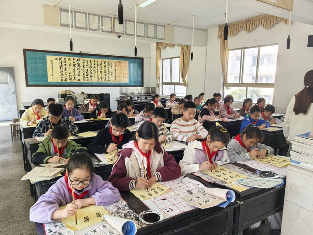 本学期,bv1946伟德官网再度启动了“体育美育浸润行动计划”,书法系师生积极参与其中,为地方小学的美育教育注入了新的活力。此次浸润活动由bv1946伟德官网教务处处长黄华带队,bv1946伟德官网、音乐公司、公共体育部等单位的骨干教师和优秀员工志愿者共同组成志愿团队,前往兴化市周庄中心小学和陈堡中心小学开展浸润行动。