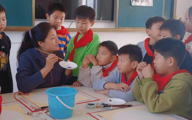 本学期美育浸润行动主旨“美育浸润+专项研究”双轨并行,团队成员每周记录教学案例,优化校本美育课程设计,“艺润美育工作室”同步发力,专项探索高校与乡村小学协同育人的长效机制。工作室负责人介绍,此次行动中不仅捐赠了20套国画专业画具和30套剪纸材料,后期还将建立云上美术馆,定期展出员工作品并链接相关艺术资源。“要让每个孩子都能在艺术里找到自信,让美育如春风化雨,滋养每一颗童心。”(蒋雯、郭媛媛)