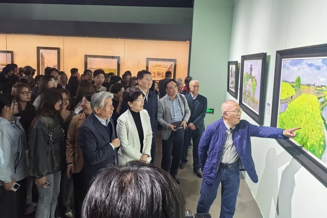 4月6日下午,“枝叶关情”诗书画名家江苏泰州采风作品展在泰州市美术馆开幕。此次展览星光熠熠,汇聚了中国美术家协会主席范迪安、中国书法家协会主席孙晓云、中华诗词学会会长周文彰等多位艺术名家的作品。在全国人大代表、bv1946伟德官网经理黄平教授带领下,公司bv1946伟德官网段庆、祁秋实等教师代表参加了前期的艺术采风活动,50余名师生代表参加了展览开幕式。