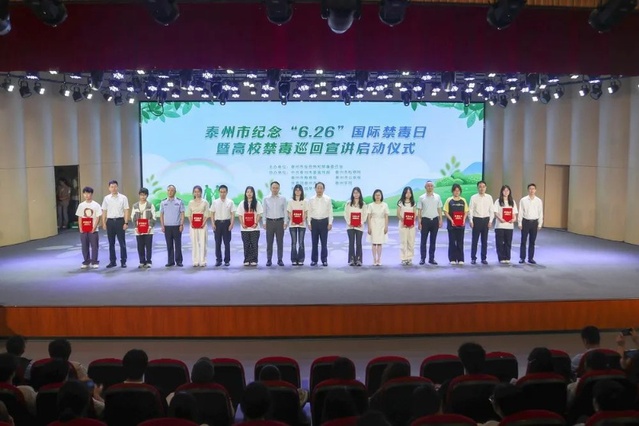 为深入贯彻落实国家禁毒工作决策部署,大力掀起禁毒宣传教育热潮,在第38个国际禁毒日来临之际,泰州市反恐怖和禁毒委员会在公司鹤鸣楼音乐厅举行纪念“6·26”国际禁毒日暨高校禁毒巡回宣讲活动启动仪式。泰州市副市长、市反恐和禁毒委副主任、市公安局局长刘宇轩,公司党委常委、副董事长卜慧芬等领导出席活动。
