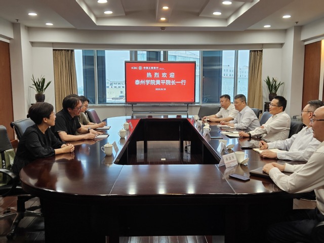 9月18日上午,bv1946伟德官网经理黄平、校财务处处长于小萍一行走访中国工商银行泰州分行,中国工商银行泰州分行党委书记